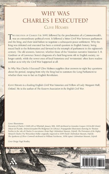 The execution of Charles I in 1649, followed by the proclamation of a Commonwealth, was an extraordinary political event. It followed a bitter Civil War between parliament and the king, and their total failure to negotiate a subsequent peace settlement. Why the king was defeated and executed has been a central question in English history, being traced back to the Reformation and forward to the triumph of parliament in the eighteenth century. The old answers, whether those of the Victorian narrative historian S.R. Gardiner or of Lawrence Stone's diagnosis of a fatal long-term rift in English society, however, no longer satisfy, while the newer ones of local historians and 'revisionists' often leave readers unclear as to why the Civil War happened at all. In Why Was Charles I Executed? Clive Holmes supplies clear answers to eight key questions about the period, ranging from why the king had to summon the Long Parliament to whether there was in fact an English Revolution.
