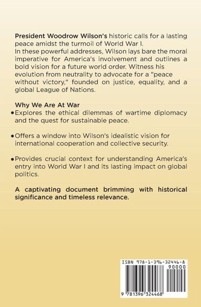 President Woodrow Wilson's historic calls for a lasting peace amidst the turmoil of World War I. In these powerful addresses, Wilson lays bare the moral imperative for America's involvement and outlines a bold vision for a future world order. Witness his evolution from neutrality to advocate for a "peace without victory," founded on justice, equality, and a global League of Nations. Why We Are At War:Explores the ethical dilemmas of wartime diplomacy and the quest for sustainable peace. Offers a window into Wilson's idealistic vision for international cooperation and collective security. Provides crucial context for understanding America's entry into World War I and its lasting impact on global politics. ¿ A captivating document brimming with historical significance and timeless relevance.