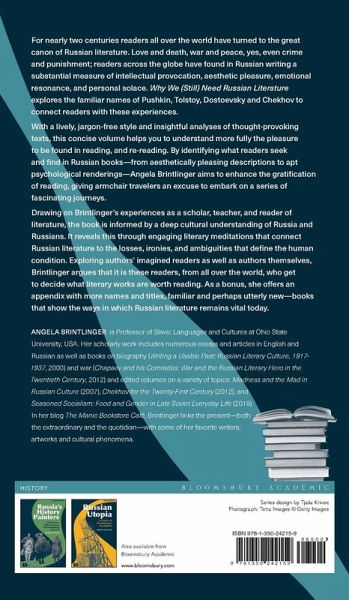 For nearly two centuries readers all over the world have turned to the great canon of Russian literature. Love and death, war and peace, yes, even crime and punishment; readers across the globe have found in Russian writing a substantial measure of intellectual provocation, aesthetic pleasure, emotional resonance, and personal solace. Why We (Still) Need Russian Literature uses a number of Russian authors, from the familiar names of Tolstoy, Dostoevsky and Chekhov to less widely known writers like Goncharov, Bunin and Erofeev, to connect readers with these experiences. With a lively, jargon-free style and insightful analyses of thought-provoking texts, this concise volume helps you to understand more fully the pleasure to be found in reading by putting you in conversation with some of the Russian masters. Though Russian novels often seem to be as big and potentially dangerous as a brick, this book argues that 'big' is in the eye of the beholder; the very definition of a Big Book, as is argued here, being a work of literature that bears reading and rereading, contemplating and discussing. Indeed by demonstrating how to identify what readers seek, and find-from aesthetically pleasing descriptions to apt psychological renderings-in Russian books, Angela Brintlinger seeks to enhance the gratification of reading, giving armchair travelers an excuse to embark on a series of fascinating journeys. Drawing on Brintlinger's experiences as a scholar, teacher, and reader of literature, the book is informed by a deep cultural understanding of Russia and Russians. It reveals this through engaging literary meditations that connect Russian literature to those losses, ironies, and ambiguities that define the human condition. More specifically, it will serve as a guide or a prompt to give the Big Books of Russian literature a(nother) chance.