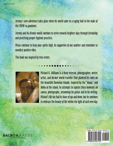Jeremy's new adventure takes place when his world came to a raging halt in the wake of the COVID-19 pandemic. Jeremy and his friends would continue to strive towards brighter days through friendship and practicing proper hygienic practices. Please continue to keep your spirits high, be supportive of one another and remember to manifest positive vibes. This book was inspired by true events.
