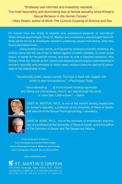 An unparalleled exploration of the mysteries underlying women's sexuality that rivals the culture-shifting Kinsey Report, from two of America's leading research psychologists Do women have sex simply to express love, experience pleasure, or reproduce? When clinical psychologist Cindy M. Meston and evolutionary psychologist David M. Buss, both at the University of Texas at Austin, joined forces to investigate women's underlying sexual motivations, what they found astonished them. Using women's own words, and backed by extensive scientific evidence, the authors delve into the use of sex as a defensive tactic against a mate's infidelity, a ploy to boost social status, a barter for household chores, and even as a cure for a migraine headache. Meston and Buss offer a revelatory examination of the deep-seated psychology and biology that often unwittingly drive women to have sex, sometimes in pursuit of joy, and sometimes for darker, more disturbing reasons. Why Women Have Sex stands as the richest and deepest psychological understanding of women's sexuality yet achieved and promises to inform every woman's (and her partner's) awareness of her relationship to sex.