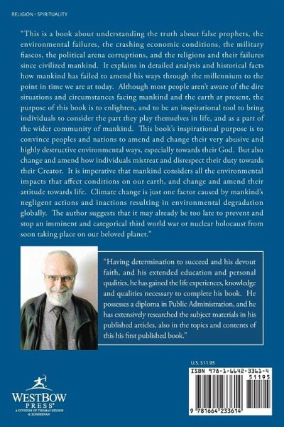 "This is a book about understanding the truth about false prophets, the environmental failures, the crashing economic conditions, the military fiascos, the political arena corruptions, and the religions and their failures since civilized mankind. It explains in detailed analysis and historical facts how mankind has failed to amend his ways through the millennium to the point in time we are at today. Although most people aren't aware of the dire situations and circumstances facing mankind and the earth at present, the purpose of this book is to enlighten, and to be an inspirational tool to bring individuals to consider the part they play themselves in life, and as a part of the wider community of mankind. This book's inspirational purpose is to convince peoples and nations to amend and change their very abusive and highly destructive environmental ways, especially towards their God. But also change and amend how individuals mistreat and disrespect their duty towards their Creator. It is imperative that mankind considers all the environmental impacts that affect conditions on our earth, and change and amend their attitude towards life. Climate change is just one factor caused by mankind's negligent actions and inactions resulting in environmental degradation globally. The author suggests that it may already be too late to prevent and stop an imminent and categorical third world war or nuclear holocaust from soon taking place on our beloved planet."