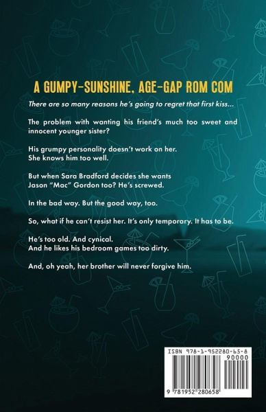 A gumpy-sunshine, age-gap rom com There are so many reasons he's going to regret that first kiss... The problem with wanting his friend's much too sweet and innocent younger sister? His grumpy personality doesn't work on her. She knows him too well. But when Sara Bradford decides she wants Jason "Mac" Gordon too? He's screwed. In the bad way. But the good way, too. So, what if he can't resist her. It's only temporary. It has to be. He's too old. And cynical. And he likes his bedroom games too dirty. And, oh yeah, her brother will never forgive him.