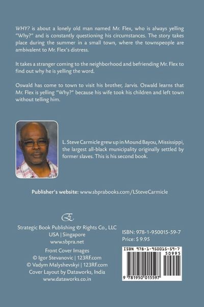 WHY? is about a lonely old man named Mr. Flex, who is always yelling "Why?" and is constantly questioning his circumstances. The story takes place during the summer in a small town, where the townspeople are ambivalent to Mr. Flex’s distress. It takes a stranger coming to the neighborhood and befriending Mr. Flex to find out why he is yelling the word. Oswald has come to town to visit his brother, Jarvis. Oswald learns that Mr. Flex is yelling "Why?" because his wife took his children and left town without telling him. Author Bio: L. Steve Carmicle grew up in Mound Bayou, Mississippi, the largest all-black municipality originally settled by former slaves. This is his second book.