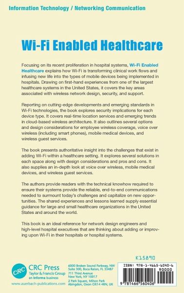 Focusing on the recent proliferation of Wi-Fi in hospital systems, this book explains how Wi-Fi is transforming clinical work flows and infusing new life into the types of mobile devices being implemented in hospitals. Drawing on years of consulting with hospitals in the US and abroad, and with first-hand experiences from one of the largest healthcare systems in the United States, it covers the key areas associated with wireless network design, security, and support. Reporting on cutting-edge developments and emerging standards in Wi-Fi technologies, the book explores security implications for each device type. It covers real-time location services and emerging trends in cloud-based wireless architecture.