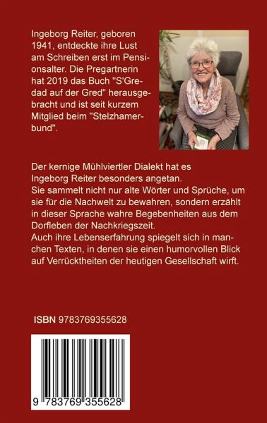 Ingeborg Reiter, geboren 1941, entdeckte ihre Lust am Schreiben erst im Pensionsalter. Die Pregartnerin hat 2019 das Buch "S'Gredad auf der Gred" herausgebracht und ist seit kurzem Mitglied beim "Stelzhamerbund".