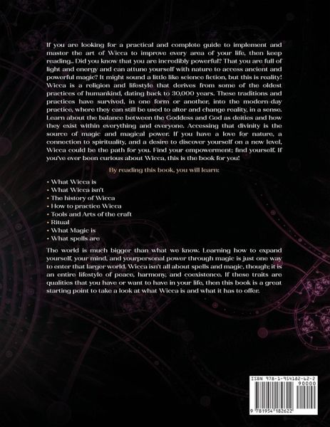 If you are looking for a practical and complete guide to implement and master the art of Wicca to improve every area of your life, then keep reading.. Did you know that you are incredibly powerful? That you are full of light and energy and can attune yourself with nature to access ancient and powerful magic? It might sound a little like science fiction, but this is reality! Wicca is a religion and lifestyle that derives from some of the oldest practices of humankind, dating back to 30,000 years. These traditions and practices have survived, in one form or another, into the modern-day practice, where they can still be used to alter and change reality, in a sense. Learn about the balance between the Goddess and God as deities and how they exist within everything and everyone. Accessing that divinity is the source of magic and magical power. If you have a love for nature, a connection to spirituality, and a desire to discover yourself on a new level, Wicca could be the path for you. Find your empowerment; find yourself. If you've ever been curious about Wicca, this is the book for you! By reading this book, you will learn: ¿What Wicca is ¿What Wicca isn't ¿The history of Wicca ¿How to practice Wicca ¿Tools and Arts of the craft ¿Ritual ¿What Magic is ¿What spells are The world is much bigger than what we know. Learning how to expand yourself, your mind, and your personal power through magic is just one way to enter that larger world. Wicca isn't all about spells and magic, though; it is an entire lifestyle of peace, harmony, and coexistence. If these traits are qualities that you have or want to have in your life, then this book is a great starting point to take a look at what Wicca is and what it has to offer. Scroll up and click the ADD TO CART Button and begin your journey into the Wiccan lifestyle today! Blessed Be!