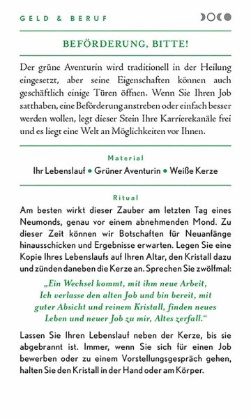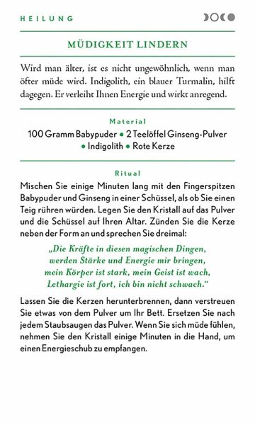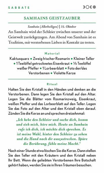 Diese Sammlung von 100 magischen Sprüchen und Ritualen auf wunderschön gestalteten Karten gibt Ihnen alles an die Hand, was Sie für starke Zaubersprüche brauchen. Ob Sie lediglich ab und an ein Ritual durchführen oder sich der Hexerei ganz verschrieben haben - auf den Karten finden sich die perfekten Sprüche in zehn Kategorien. Das Set umfasst 100 Karten mit Zaubersprüchen sowie eine Anleitung und erklärt, wie Zauber gesprochen werden, welches Material benötigt und wie Mondmagie ausgeübt wird. Die Vorderseiten der Karten sehen kunstvoll aus, auf der Rückseite stehen die Sprüche und Rituale