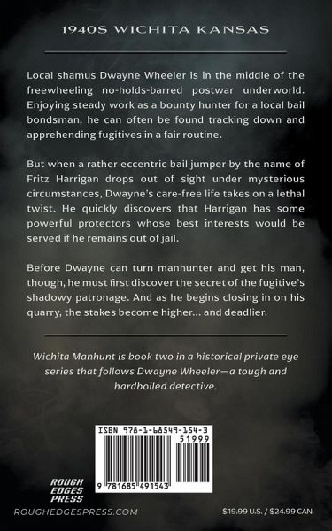 "1940s Wichita, Kansas Local shamus Dwayne Wheeler is in the middle of the freewheeling no-holds-barred postwar underworld. Enjoying steady work as a bounty hunter for a local bail bondsman, he can often be found tracking down and apprehending fugitives in a fair routine. But when a rather eccentric bail jumper by the name of Fritz Harrigan drops out of sight under mysterious circumstances, Dwayne's care-free life takes on a lethal twist. He quickly discovers that Harrigan has some powerful protectors whose best interests would be served if he remains out of jail. Before Dwayne can turn…mehr