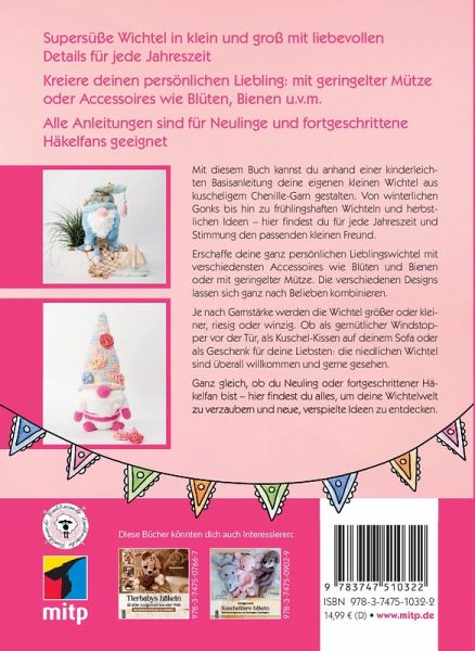 Supersüße Wichtel in klein und groß mit liebevollen Details für jede JahreszeitKreiere deinen persönlichen Liebling: mit geringelter Mütze oder Accessoires wie Blüten, Bienen u.v.m.Alle Anleitungen sind für Neulinge und fortgeschrittene Häkelfans geeignet