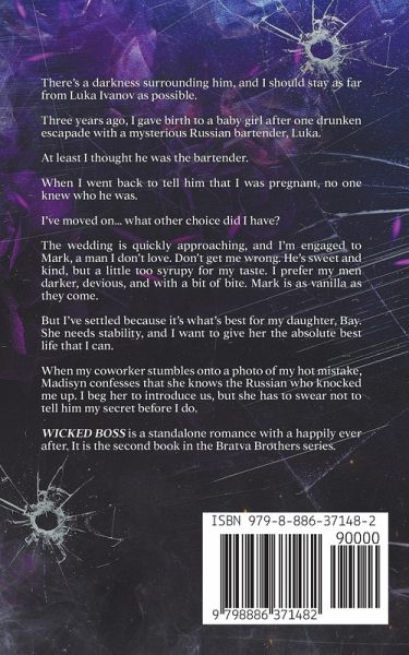 There's a darkness surrounding him, and I should stay as far from Luka Ivanov as possible. Three years ago, I gave birth to a baby girl after one drunken escapade with a mysterious Russian bartender, Luka. At least I thought he was the bartender. When I went back to tell him that I was pregnant, no one knew who he was. I've moved on… what other choice did I have? The wedding is quickly approaching, and I'm engaged to Mark, a man I don't love. Don't get me wrong. He's sweet and kind, but a little too syrupy for my taste. I prefer my men darker, devious, and with a bit of bite. Mark is as vanilla as they come. But I've settled because it's what's best for my daughter, Bay. She needs stability, and I want to give her the absolute best life that I can. When my coworker stumbles onto a photo of my hot mistake, Madisyn confesses that she knows the Russian who knocked me up. I beg her to introduce us, but she has to swear not to tell him my secret before I do. Wicked Boss is a standalone romance with a happily ever after. It is the second book in the Bratva Brothers series.