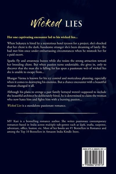 Her one captivating encounter led to his wicked lies... When Sukanya is hired by a mysterious hotel tycoon for a project, she's shocked that her client is the dark, handsome stranger she's been dreaming of lately. She had met him once under embarrassing circumstances when he mistook her for a paid escort. Sparks fly and awareness buzzes while she resists the strong attraction toward her brooding client. But when passion turns undeniable, she gives in, only to discover that the man she is falling for has spun a passionate web of wicked lies she is unable to escape from... Bhargav Varma is known for his icy control and meticulous planning, especially when it comes to destroying his enemies. But a chance encounter with a beautiful woman changed it all. Although his plans to avenge a past family betrayal weren't supposed to include the beautiful architect he deliberately hired, he is determined to claim the woman who now hates him and fights him with a burning passion... Wicked Lies is a standalone passionate romance and Book 2 of the Varma Brothers series.
