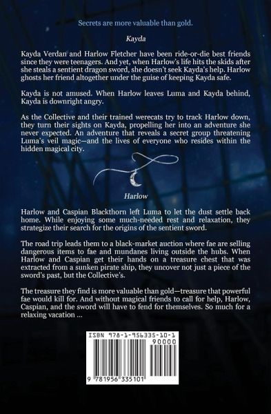 Secrets are more valuable than gold. Kayda Kayda Verdan and Harlow Fletcher have been ride-or-die best friends since they were teenagers. And yet, when Harlow's life hits the skids after she steals a sentient dragon sword, she doesn't seek Kayda's help. Harlow ghosts her friend altogether under the guise of keeping Kayda safe. Kayda is not amused. When Harlow leaves Luma and Kayda behind, Kayda is downright angry. As the Collective and their trained werecats try to track Harlow down, they turn their sights on Kayda, propelling her into an adventure she never expected. An adventure that reveals a secret group threatening Luma's veil magic-and the lives of everyone who resides within the hidden magical city. ~ ~ ~ Harlow Harlow and Caspian Blackthorn left Luma to let the dust settle back home. While enjoying some much-needed rest and relaxation, they strategize their search for the origins of the sentient sword. The road trip leads them to a black-market auction where fae are selling dangerous items to fae and mundanes living outside the hubs. When Harlow and Caspian get their hands on a treasure chest that was extracted from a sunken pirate ship, they uncover not just a piece of the sword's past, but the Collective's. The treasure they find is more valuable than gold-treasure that powerful fae would kill for. And without magical friends to call for help, Harlow, Caspian, and the sword will have to fend for themselves. So much for a relaxing vacation ...