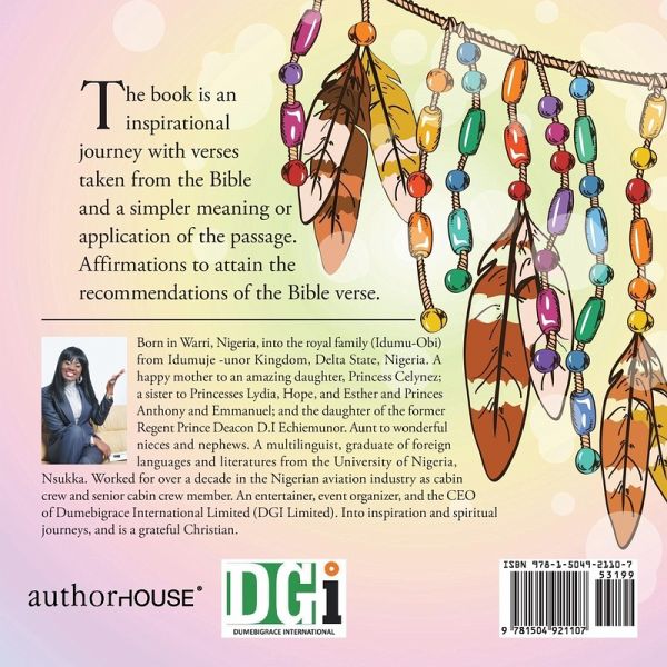 Born in Warri, Nigeria, into the royal family (Idumu-Obi) from Idumuje -unor Kingdom, Delta State, Nigeria. A happy mother to an amazing daughter, Princess Celynez; a sister to Princesses Lydia, Hope, and Esther and Princes Anthony and Emmanuel; and the daughter of the former Regent Prince Deacon D.I Echiemunor. Aunt to wonderful nieces and nephews. A multilinguist, graduate of foreign languages and literatures from the University of Nigeria, Nsukka. Worked for over a decade in the Nigerian aviation industry as cabin crew and senior cabin crew member. An entertainer, event organizer, and the CEO of Dumebigrace International Limited (DGI Limited). Into inspiration and spiritual journeys, and is a grateful Christian.