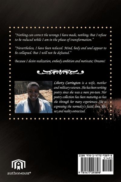 "Nothing can correct the wrongs I have made, nothing. But I refuse to be reduced while I am in the phase of transformation." "Nevertheless, I have been reduced. Mind, body and soul appear to be collapsed. But I will not be defeated." Because I desire realization, embody ambition and motivate; Dreams!