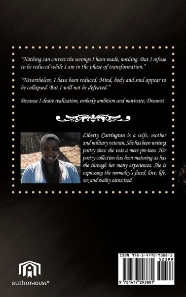 "Nothing can correct the wrongs I have made, nothing. But I refuse to be reduced while I am in the phase of transformation." "Nevertheless, I have been reduced. Mind, body and soul appear to be collapsed. But I will not be defeated." Because I desire realization, embody ambition and motivate; Dreams!