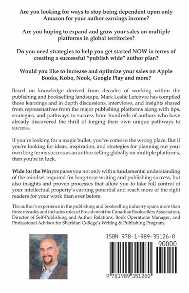 Are you looking for ways to stop being dependent upon only Amazon for your author earnings income? Are you hoping to expand and grow your sales on multiple platforms in global territories? Do you need strategies to help you get started NOW in terms of creating a successful "publish wide" author plan? Would you like to increase and optimize your sales on Apple Books, Kobo, Nook, Google Play and more? Then WIDE FOR THE WIN is the book for you. Based on knowledge derived from decades of working within the publishing and bookselling landscape, Mark Leslie Lefebvre has compiled those learnings and in depth discussions, interviews, and insights shared from representatives from the major publishing platforms along with tips, strategies, and pathways to success from hundreds of authors who have already discovered the thrill of forging their own unique pathways to success. If you're looking for a magic bullet, you've come to the wrong place. But if you're looking for ideas, inspiration, and strategies for planning out your own long terms success as an author selling globally on multiple platforms, then you're in luck. WIDE FOR THE WIN prepares you not only with a fundamental understanding of the mindset required for long-term writing and publishing success, but also insights and proven processes that allow you to take full control of your intellectual property's earning potential and reach more of the right readers for your work than ever before.