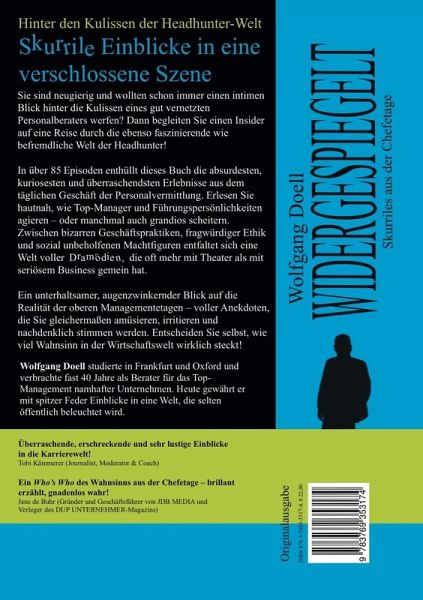 Sind Sie neugierig und wollten schon immer einmal einen intimen Blick hinter die Kulissen eines gut vernetzten Personalberaters und seiner täglichen Arbeit werfen? Über einen Insider erfahren Sie erstmals mehr über die skurrilen Erlebnisse mit, von und über Headhunter, deren Auftraggeber und Kandidaten! In mehr als 85 ausgewählten Episoden tauchen Sie ein in eine Welt von absurd anmutenden Geschäftssituationen, irritierenden Geschäftspraktiken und befremdlich gelebten Ethikregeln. Lassen Sie sich von einem illustren Sammelsurium sonderbar agierender Charaktere unterhalten, die, als Führungspersönlichkeiten der obersten Managementebenen getarnt, im Umgang miteinander aufgrund ihrer mangelnden emotionalen oder sozialen Intelligenz für "Dramödien" sorgen. Eines ist hier ganz sicher: Auch das Top-Management spiegelt alle Facetten unserer Gesellschaft sowie deren soziale Strukturen, Normen und Werte wider. Aber entscheiden Sie selbst!