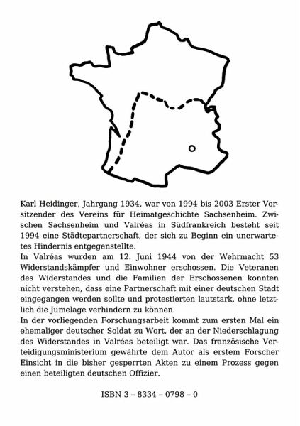 Zwischen Valréas und Sachsenheim, der Heimatstadt des Autors, besteht seit 1994 eine Städtepartnerschaft. In Valréas wurden am 12. Juni 1944 von der Wehrmacht 53 Widerstandskämpfer und Einwohner erschossen. Französischen Widerstandskämpfer, die rechtzeitig flüchten konnten, erzählen den Hergang der Besetzung von Valréas. Drei Überlebende der Erschießungen schildern, was sie fühlten und dachten, als sie vor dem Erschießungskommando standen. Zum ersten Mal kommt ein ehemaliger deutscher Soldat zu Wort, der an der Niederschlagung des Widerstandes in Valréas beteiligt war. Das französische Verteidigungsministerium gewährte dem Autor als Erstem Einsicht in die bisher gesperrten Akten zu einem Prozess gegen einen beteiligten deutschen Offizier, womit die Hintergründe der Tragödie aufgedeckt werden. Im Zuge seiner Nachforschungen kam der Autor auch mit einem Überlebenden der Erschießungen und mit Angehörigen der Toten ins Gespräch und erhielt von Ihnen volle Unterstützung für sein Vorhaben.
