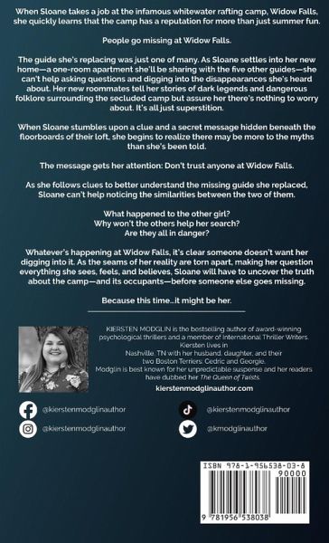 The last girl went missing... Someone doesn't want her to be found. When Sloane takes a job at the infamous whitewater rafting camp, Widow Falls, she quickly learns that the camp has a reputation for more than just summer fun. People go missing at Widow Falls. The guide she's replacing was just one of many. As Sloane settles into her new home-a one-room apartment she'll be sharing with the five other guides-she can't help asking questions and digging into the disappearances she's heard about. Her new roommates tell her stories of dark legends and dangerous folklore surrounding the secluded camp but assure her there's nothing to worry about. It's all just superstition. When Sloane stumbles upon a clue and a secret message hidden beneath the floorboards of their loft, she begins to realize there may be more to the myths than she's been told. The message gets her attention: Don't trust anyone at Widow Falls. As she follows clues to better understand the missing guide she replaced, Sloane can't help noticing the similarities between the two of them. What happened to the other girl? Why won't the others help her search? Are they all in danger? Whatever's happening at Widow Falls, it's clear someone doesn't want her digging into it. As the seams of her reality are torn apart, making her question everything she sees, feels, and believes, Sloane will have to uncover the truth about the camp-and its occupants-before someone else goes missing. Because this time...it might be her.