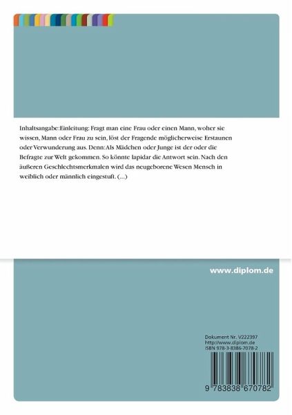 Fragt man eine Frau oder einen Mann, woher sie wissen, Mann oder Frau zu sein, löst der Fragende möglicherweise Erstaunen oder Verwunderung aus. Denn: Als Mädchen oder Junge ist der oder die Befragte zur Welt gekommen. So könnte lapidar die Antwort sein. Nach den äußeren Geschlechtsmerkmalen wird das neugeborene Wesen Mensch in weiblich oder männlich eingestuft. In sehr seltenen Fällen kommt laut Birbaumer und Schmidt (1999) das echte Zwittertum (Hermaphroditismus verus) vor, bei dem männliche und weibliche Keimdrüsen in einem Individuum vorzufinden sind.