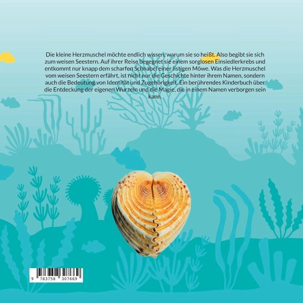 Die kleine Herzmuschel möchte endlich wissen, warum sie so heißt. Also begibt sie sich zum weisen Seestern. Auf ihrer Reise begegnet sie einem sorglosen Einsiedlerkrebs und entkommt nur knapp dem scharfen Schnabel einer listigen Möwe. Was die Herzmuschel vom weisen Seestern erfährt, ist nicht nur die Geschichte hinter ihrem Namen, sondern auch die Bedeutung von Identität und Zugehörigkeit. Ein berührendes Kinderbuch über die Entdeckung der eigenen Wurzeln und die Magie, die in einem Namen verborgen sein kann.