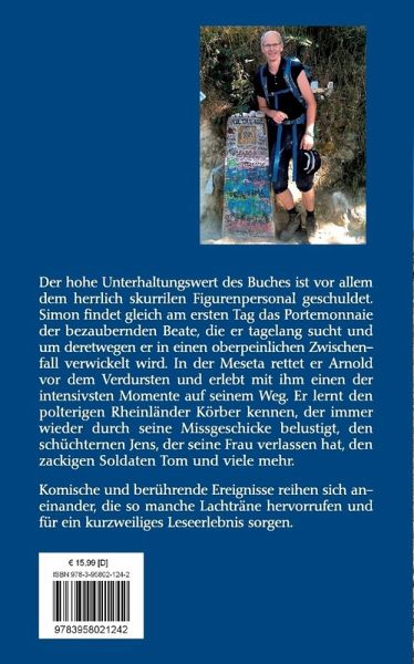 Simon findet gleich am ersten Tag das Portemonnaie der bezaubernden Beate, die er tagelang sucht und um derentwegen er in einen sehr peinlichen Zwischenfall verwickelt wird. In der Meseta rettet er Arnold vor dem Verdursten und erlebt mit ihm einen der intensivsten Momente auf seinem Weg. Er lernt den polterigen Rheinländer Körber kennen, der immer wieder durch seine Missgeschicke belustigt, den schüchternen Jens, der seine Frau verlassen hat, den zackigen Soldaten Tom und viele mehr.