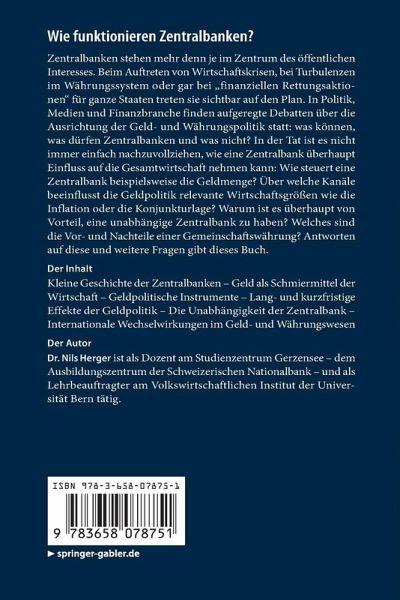 Zentralbanken stehen mehr denn je im Zentrum des öffentlichen Interesses. Beim Auftreten von Wirtschaftskrisen, bei Turbulenzen im Währungssystem oder gar bei "finanziellen Rettungsaktionen" für ganze Staaten treten sie sichtbar auf den Plan. In Politik, Medien und Finanzbranche finden aufgeregte Debatten über die Ausrichtung der Geld- und Währungspolitik statt: was können, was dürfen Zentralbanken und was nicht? In der Tat ist es nicht immer einfach nachzuvollziehen, wie eine Zentralbank überhaupt Einfluss auf die Gesamtwirtschaft nehmen kann: Wie steuert eine Zentralbank beispielsweise die Geldmenge? Über welche Kanäle beeinflusst die Geldpolitik relevante Wirtschaftsgrößen wie die Inflation oder die Konjunkturlage? Warum ist es überhaupt von Vorteil, eine unabhängige Zentralbank zu haben? Welches sind die Vor- und Nachteile einer Gemeinschaftswährung? Antworten auf diese und weitere Fragen gibt dieses Buch.