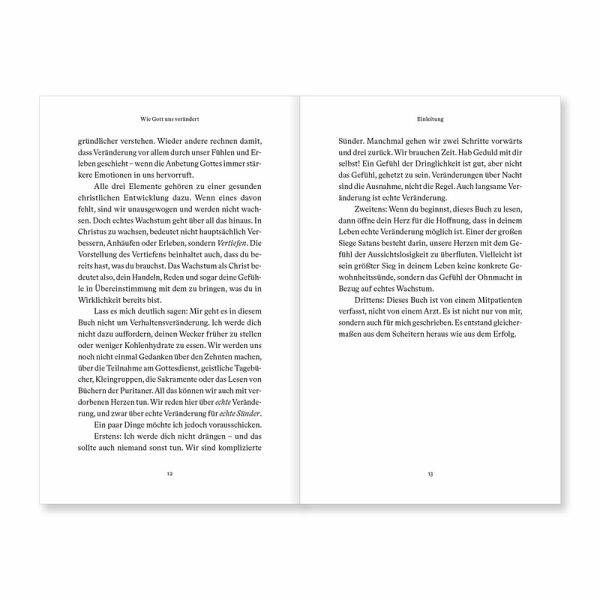 So führt der…mehrDas Buch hat mir sehr gefallen. Denn Ortlund erklärt zunächst die Theorie, das Evangelium und worauf es ankommt. Doch danach zeigt er auch konkrete Schritte auf, die wir machen können, um verändert zu werden. Es bleibt nicht nur wohlklingend, sondern es wird konkret. Und die Schritte sind leicht umsetzbar, sodass eigentlich kein Christ mehr eine Ausrede hat, sich nicht zu verändern.