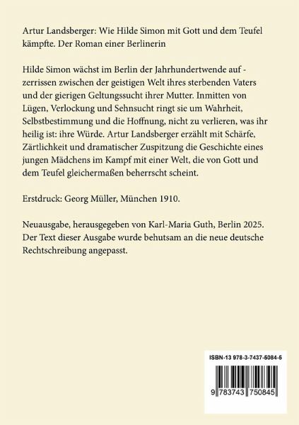 Artur Landsberger: Wie Hilde Simon mit Gott und dem Teufel kämpfte. Der Roman einer Berlinerin Hilde Simon wächst im Berlin der Jahrhundertwende auf - zerrissen zwischen der geistigen Welt ihres sterbenden Vaters und der gierigen Geltungssucht ihrer Mutter. Inmitten von Lügen, Verlockung und Sehnsucht ringt sie um Wahrheit, Selbstbestimmung und die Hoffnung, nicht zu verlieren, was ihr heilig ist: ihre Würde. Artur Landsberger erzählt mit Schärfe, Zärtlichkeit und dramatischer Zuspitzung die Geschichte eines jungen Mädchens im Kampf mit einer Welt, die von Gott und dem Teufel gleichermaßen beherrscht scheint. Erstdruck: Georg Müller, München 1910. Neuausgabe, herausgegeben von Karl-Maria Guth, Berlin 2025. Der Text dieser Ausgabe wurde behutsam an die neue deutsche Rechtschreibung angepasst. Gesetzt aus der Minion Pro, 11 pt. Henricus - Edition Deutsche Klassik GmbH
