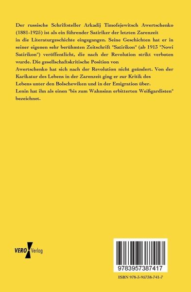 Der russische Schriftsteller Arkadij Timofejewitsch Awertschenko (1881-1925) ist als ein führender Satiriker der letzten Zarenzeit