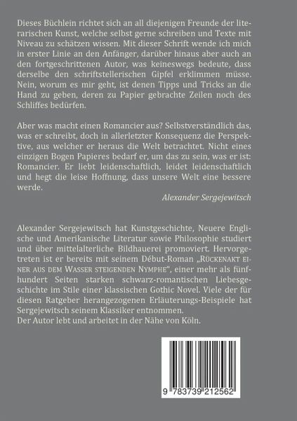 Dieses Büchlein richtet sich an all diejenigen Freunde der literarischen Kunst, welche selbst gerne schreiben und Texte mit Niveau zu schätzen wissen. Mit dieser Schrift wende ich mich in erster Linie an den Anfänger, darüber hinaus aber auch an den fortgeschrittenen Autor, was keineswegs bedeute, dass derselbe den schriftstellerischen Gipfel erklimmen müsse. Nein, worum es mir geht, ist denen Tipps und Tricks an die Hand zu geben, deren zu Papier gebrachte Zeilen noch des Schliffes bedürfen. Alexander Sergejewitsch