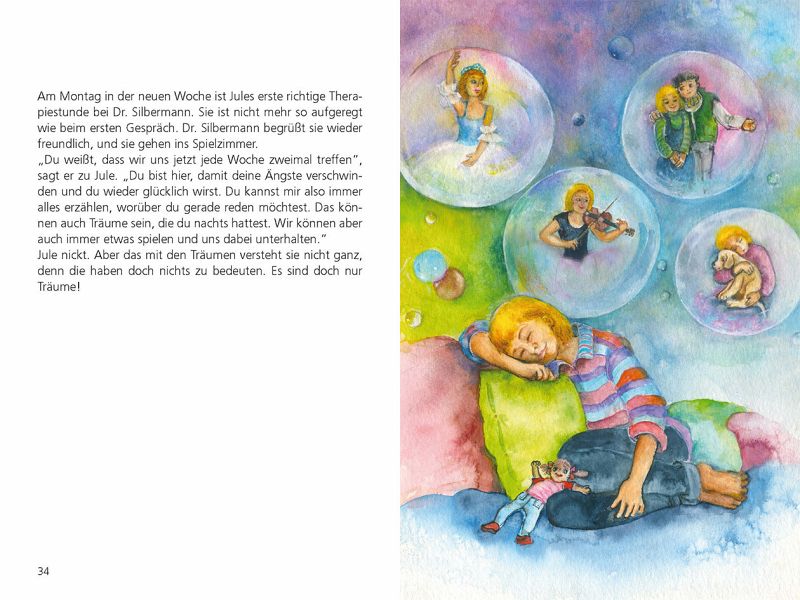 Jule ist zehn Jahre alt und gut in der Schule. Doch als sie sich eines Morgens von ihrer Mama verabschiedet, setzt sich plötzlich ein Gedanke in ihrem Kopf fest: Was wäre, wenn Mama etwas passiert? Diese Angst beherrscht Jule so sehr, dass ihr im Schulflur ganz schlecht wird und sie nach Hause rennt. Nachdem Jule drei Wochen nicht zur Schule gegangen ist, überweist sie der Kinderarzt an einen Psychotherapeuten. Jule staunt, dass es dort eher so aussieht wie in ihrem Kinderzimmer und nicht wie in einem Untersuchungsraum. Zusammen mit ihren Eltern geht sie jetzt regelmäßig zur Therapie - und nach und nach verschwindet ihre Angst.Der Kinder- und Jugendlichenpsychotherapeut Hans Hopf verdeutlicht Kindern am Beispiel der Schulangst den Verlauf einer psychotherapeutischen Behandlung. So ist das Buch auch bei anderen Krankheitsbildern von Kindern und Jugendlichen einsetzbar.Für Kinder ab 8 Jahren.