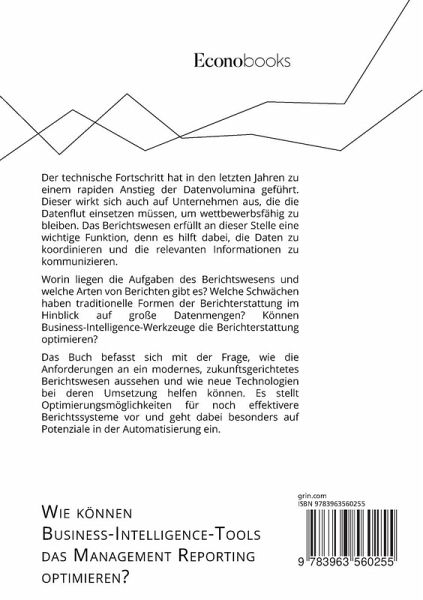 Der technische Fortschritt hat in den letzten Jahren zu einem rapiden Anstieg der Datenvolumina geführt. Dieser wirkt sich auch auf Unternehmen aus, die die Datenflut einsetzen müssen, um wettbewerbsfähig zu bleiben. Das Berichtswesen erfüllt an dieser Stelle eine wichtige Funktion, denn es hilft dabei, die Daten zu koordinieren und die relevanten Informationen zu kommunizieren. Worin liegen die Aufgaben des Berichtswesens und welche Arten von Berichten gibt es? Welche Schwächen haben traditionelle Formen der Berichterstattung im Hinblick auf große Datenmengen? Können Business-Intelligence-Werkzeuge die Berichterstattung optimieren?Das Buch befasst sich mit der Frage, wie die Anforderungen an ein modernes, zukunftsgerichtetes Berichtswesen aussehen und wie neue Technologien bei deren Umsetzung helfen können. Es stellt Optimierungsmöglichkeiten für noch effektivere Berichtssysteme vor und geht dabei besonders auf Potenziale in der Automatisierung ein. Aus dem Inhalt:-Nutzwertanalyse;-Controlling;-Automatisierung;-Tabellenkalkulation;-ERP-Systeme;-Berichterstattung