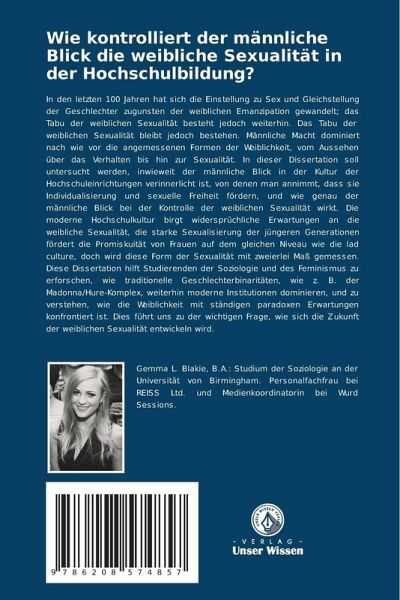 In den letzten 100 Jahren hat sich die Einstellung zu Sex und Gleichstellung der Geschlechter zugunsten der weiblichen Emanzipation gewandelt; das Tabu der weiblichen Sexualität besteht jedoch weiterhin. Das Tabu der weiblichen Sexualität bleibt jedoch bestehen. Männliche Macht dominiert nach wie vor die angemessenen Formen der Weiblichkeit, vom Aussehen über das Verhalten bis hin zur Sexualität. In dieser Dissertation soll untersucht werden, inwieweit der männliche Blick in der Kultur der Hochschuleinrichtungen verinnerlicht ist, von denen man annimmt, dass sie Individualisierung und sexuelle Freiheit fördern, und wie genau der männliche Blick bei der Kontrolle der weiblichen Sexualität wirkt. Die moderne Hochschulkultur birgt widersprüchliche Erwartungen an die weibliche Sexualität, die starke Sexualisierung der jüngeren Generationen fördert die Promiskuität von Frauen auf dem gleichen Niveau wie die lad culture, doch wird diese Form der Sexualität mit zweierlei Maß gemessen. Diese Dissertation hilft Studierenden der Soziologie und des Feminismus zu erforschen, wie traditionelle Geschlechterbinaritäten, wie z. B. der Madonna/Hure-Komplex, weiterhin moderne Institutionen dominieren, und zu verstehen, wie die Weiblichkeit mit ständigen paradoxen Erwartungen konfrontiert ist. Dies führt uns zu der wichtigen Frage, wie sich die Zukunft der weiblichen Sexualität entwickeln wird.