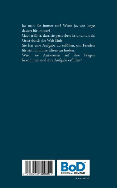 Ist man für immer tot? Wenn ja, wie lange dauert für immer? Gabi erfährt, dass sie gestorben ist und nun als Geist durch die Welt läuft. Sie hat eine Aufgabe zu erfüllen, um Frieden für sich und ihre Eltern zu finden. Wird sie Antworten auf ihre Fragen bekommen und ihre Aufgabe erfüllen?