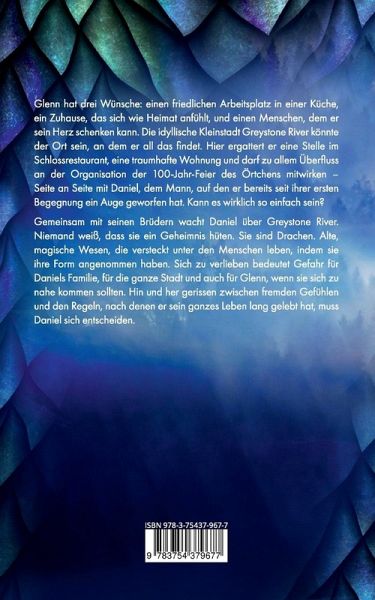 Verlieb dich niemals in einen Menschen. Verrate niemals unser Geheimnis.Glenn hat drei Wünsche: eine Küche, in der er kreativ werden kann, ein Zuhause, das sich wie Heimat anfühlt, und einen Mann, dem er sein Herz schenken kann. Die idyllische Kleinstadt Greystone River könnte der Ort sein, an dem er all das findet. Hier ergattert er eine Stelle im Burgrestaurant, eine traumhafte Wohnung und darf sogar an der Organisation der 100-Jahr-Feier des Örtchens mitwirken - Seite an Seite mit dem unverschämt attraktiven Sohn des Bürgermeisters. Wo ist nur der Haken?Seit er denken kann, folgt Daniel den strengen Regeln seines Vaters. Die wichtigste davon: Schade keinem Menschen. Denn auch, wenn er seine Magie nur zum Wohl der Bewohner des Städtchens einsetzt, schlummert in jedem Drachen die Macht zu großer Zerstörung - ein unkontrollierter Gefühlsausbruch könnte sie jederzeit entfesseln und Unheil über die Menschen um ihn herum bringen.Daniel darf sich nicht verlieben. Niemals. Auch nicht in diesen hübschen Koch, der gerade frisch nach Greystone River gezogen ist und ihn mit seinem schüchternen Lächeln verzaubert. Doch ein Herz macht sich nichts aus Regeln.