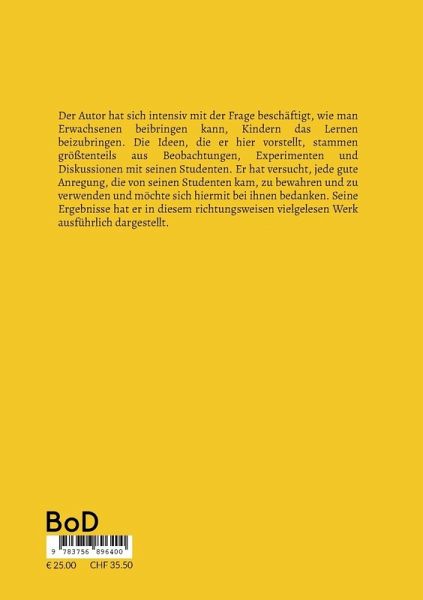 Der Autor hat sich intensiv mit der Frage beschäftigt, wie man Erwachsenen beibringen kann, Kindern das Lernen beizubringen. Die Ideen, die er hier vorstellt, stammen größtenteils aus Beobachtungen, Experimenten und Diskussionen mit seinen Studenten. Er hat versucht, jede gute Anregung, die von seinen Studenten kam, zu bewahren und zu verwenden und möchte sich hiermit bei ihnen bedanken. Seine Ergebnisse hat er in diesem richtungsweisen vielgelesen Werk ausführlich dargestellt.