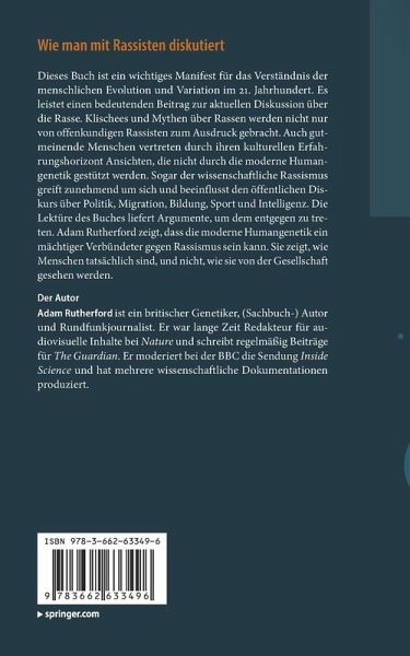 Dieses Buch ist ein wichtiges Manifest für das Verständnis der menschlichen Evolution und Variation im 21. Jahrhundert. Es leistet einen bedeutenden Beitrag zur aktuellen Diskussion über die Rasse. Klischees und Mythen über Rassen werden nicht nur von offenkundigen Rassisten zum Ausdruck gebracht. Auch gut meinende Menschen vertreten durch ihren kulturellen Erfahrungshorizont Ansichten, die nicht durch die moderne Humangenetik gestützt werden. Sogar der wissenschaftliche Rassismus greift zunehmend um sich und beeinflusst den öffentlichen Diskurs über Politik, Migration, Bildung, Sport und Intelligenz. Der Leser bekommt Argumente an die Hand, um dem entgegen zu treten. Adam Rutherford zeigt, dass die moderne Humangenetik ein mächtiger Verbündeter gegen Rassismus sein kann. Sie zeigt, wie Menschen tatsächlich sind, und nicht, wie sie von der Gesellschaft gesehen werden.