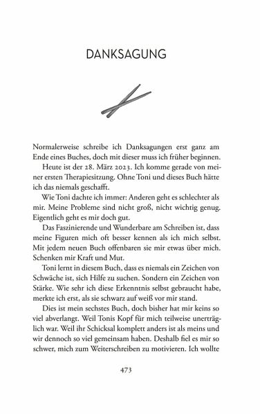 Zusammengefasst finde ich, dass man das Buch nicht nur als eine Jugendgeschichte sehen sollte, bei der man denkt, dass sich Jugendliche über dies und das beschweren. Ich finde, dass man das Buch schon als eine ernste Geschichte lesen könnte, die Aspekte hineinbringt, mit denen wir Jugendliche täglich konfrontiert werden. Es spricht die Jugendlichen an, aber gleichzeitig ist die Geschichte zwischen Toni und Lukas eine sehr herzvolle.