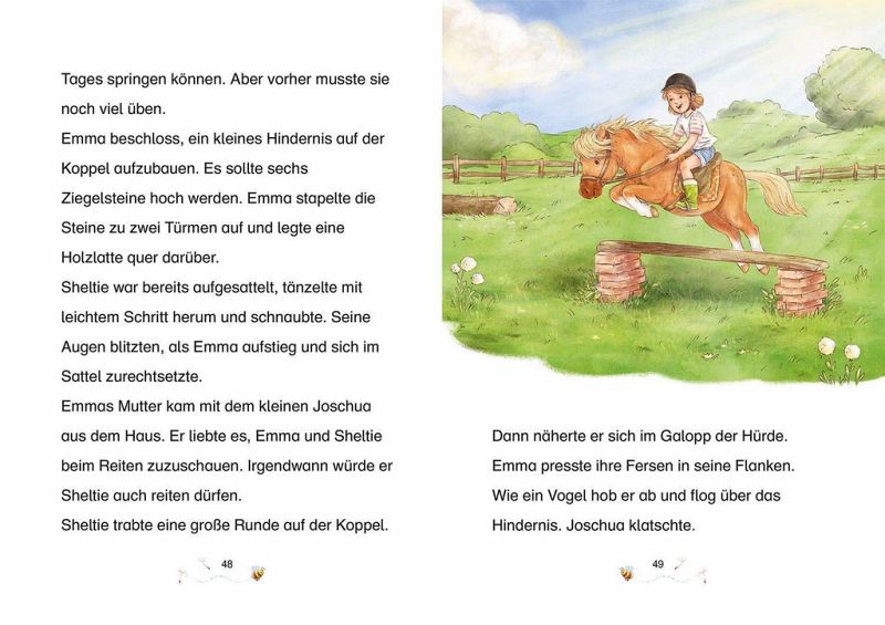 Emmas Familie zieht aufs Land, in ein Haus mit viel Grund. Emma ist deswegen gar nicht glücklich, bis sie feststellt, dass zum Haus auch das Pony Sheltie gehört, in das sie sofort ganz vernarrt ist. Mit der ehemaligen Besitzerin übt sie reiten. Nur ein