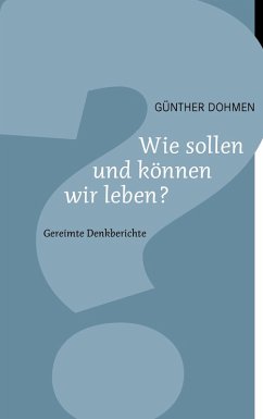 Die meisten lesen nieBücher zur Philosophie.Doch wenn's in Reime passt,wird's leichter aufgefasst.Drum kann's der Dichter wagen,hier einfach was zu sagenzu radikalen Fragen:Wo führt es hin, das Menschenleben?Was ist der Sinn von unserm Streben?Wie kann man heut erwachsen werden?Wie soll'n die Leut gebildet werden?Wie kann man brechenmit Naziverbrechen?Wie kann man's politisch wenden,dass wir nicht in Kämpfen endenum Wohlstand und um Geld zu Haus und in der Welt?Und wie wird unsre Welt durch Wissenschaft erhellt?Wie kann die Liebe heut bestehn?Und wie wird es zu Ende gehnmit unserm Erdenleben?Wird's noch ein Jenseits geben?