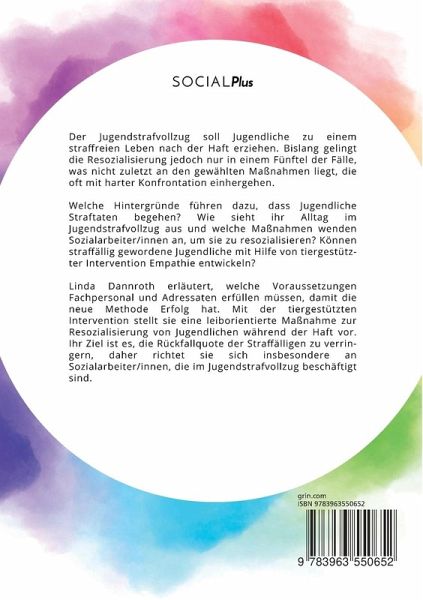 Der Jugendstrafvollzug soll Jugendliche zu einem straffreien Leben nach der Haft erziehen. Bislang gelingt die Resozialisierung jedoch nur in einem Fünftel der Fälle, was nicht zuletzt an den gewählten Maßnahmen liegt, die oft mit harter Konfrontation einhergehen. Welche Hintergründe führen dazu, dass Jugendliche Straftaten begehen? Wie sieht ihr Alltag im Jugendstrafvollzug aus und welche Maßnahmen wenden Sozialarbeiter/innen an, um sie zu resozialisieren? Können straffällig gewordene Jugendliche mit Hilfe von tiergestützter Intervention Empathie entwickeln? Linda Dannroth erläutert, welche Voraussetzungen Fachpersonal und Adressaten erfüllen müssen, damit die neue Methode Erfolg hat. Mit der tiergestützten Intervention stellt sie eine leiborientierte Maßnahme zur Resozialisierung von Jugendlichen während der Haft vor. Ihr Ziel ist es, die Rückfallquote der Straffälligen zu verringern, daher richtet sie sich insbesondere an Sozialarbeiter/innen, die im Jugendstrafvollzug beschäftigt sind. Aus dem Inhalt:-leiborientiert;-Rückfallquote;-Empathie;-Mensch-Tier-Kommunikation;-Harte Konfrontation;