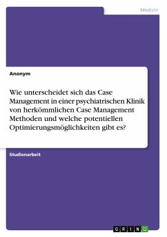 Studienarbeit aus dem Jahr 2024 im Fachbereich Pflegewissenschaft - Pflegemanagement, Note: 2,0, FOM Hochschule für Oekonomie & Management gemeinnützige GmbH, Frankfurt früher Fachhochschule (FOM), Veranstaltung: Projektmanagement, Sprache: Deutsch, Abstract: In dieser Hausarbeit soll herausgearbeitet werden, wie sich das Case Management in einer psychiatrischen Klinik von den herkömmlichen Case Management Methoden unterscheidet und welche potentiellen Optimierungsmöglichkeiten es gibt. Durch die politischen Reformen im Gesundheitswesen steigt die Anzahl der Entlassungen von betreuungsintensiven und auch pflegebedürftigen Patienten. Laut des statistischen Bundesamtes wurden im Jahr 2022 insgesamt 810978 Menschen stationär in psychiatrischen und psychosomatischen Kliniken behandelt. Für diese Patienten ist es von besonderer Relevanz, nahtlose Pflege- und Betreuungsmöglichkeiten zu generieren. Häufig funktioniert dieser Prozess nicht Lückenlos, so dass es immer wieder dazu kommt, dass die betroffenen Patienten, auf Grund einer Zustandsverschlechterung, wieder zurück in die Klinik verbracht werden. Im Krankenhaus geben es die Organisationstrukturen vor, dass alle Berufsgruppen zusammenarbeiten und somit auch die Informationsweitergabe geregelt ist. Die Planung der ambulanten Weiterbehandlung wird in den meisten Fällen vom klinischen Sozialdienst übernommen. Im ambulanten Setting werden die Patienten von unterschiedlichen Dienstleistern betreut, wodurch sich eine größere Anzahl von Schnittstellen ergibt. Vor allem die Betreuung von Patienten mit chronischen somatischen oder psychischen Erkrankungen ist eine kontinuierliche und individuelle Versorgungssituation von hoher Relevanz. Dies kann aber ausschließlich durch verstärkte Zusammenarbeit verschiedener Disziplinen und einer adäquaten Vernetzung der bestehenden Versorgungsbereiche gewährleistet werden. Aus diesem Grund sind die Leistungserbringer und Kostenträger in die Pflicht genommen worden, dies zu optimieren, um zu verhindern, dass die Unterversorgungen in der ambulanten Versorgung weiter zunehmen. Um diese Prozesse zu optimieren und um die Unterversorgung möglichst auf ein Mindestmaß zu reduzieren, werden in vielen Kliniken Case Manager etabliert. Case Manager sind dafür zuständig, im Einzelfall und bedarfsentsprechend die erforderliche Unterstützung, Behandlung, Begleitung, Förderung und Versorgung von Patienten zu organisieren und umzusetzen, auch über die stationäre Behandlung hinaus. Diese Aufgabe wurde seit dem Jahr 1913 weitestgehend vom klinischen Sozialdienst übernommen, so auch in der psychiatrischen Klinik.