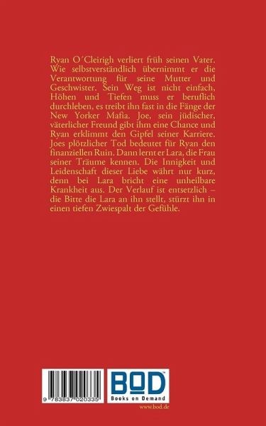 Ryan O´Cleirigh verliert früh seinen Vater. Wie selbstverständlich übernimmt er die Verantwortung für seine Mutter und Geschwister. Sein Weg ist nicht einfach, Höhen und Tiefen muss er beruflich durchleben, es treibt ihn fast in die Fänge der New Yorker Mafia. Joe, sein jüdischer, väterlicher Freund gibt ihm eine Chance und Ryan erklimmt den Gipfel seiner Karriere. Joes plötzlicher Tod bedeutet für Ryan den finanziellen Ruin. Dann lernt er Lara, die Frau seiner Träume kennen. Die Innigkeit und Leidenschaft dieser Liebe währt nur kurz, denn bei Lara bricht eine unheilbare Krankheit aus. Der Verlauf ist entsetzlich - die Bitte die Lara an ihn stellt, stürzt ihn in einen tiefen Zwiespalt der Gefühle.