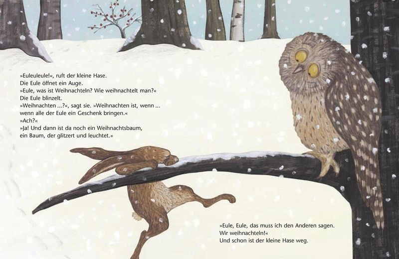 "Weihnachten ist, wenn mir alle ein Geschenk bringen". Das erklärt die Eule frech dem kleinen Hasen und der erzählt es genauso weiter. Bald basteln alle Tiere im Winterwald ein Geschenk für die Eule. Doch bevor es dann ans Verschenken geht, passieren kleine Missgeschicke und Überraschungen, so dass die Geschenke dort landen, wo sie dringend gebraucht werden. Eine witzige und gefühlvolle Geschichte über den wahren Sinn des Schenkens - immer und besonders zur Weihnachtszeit!