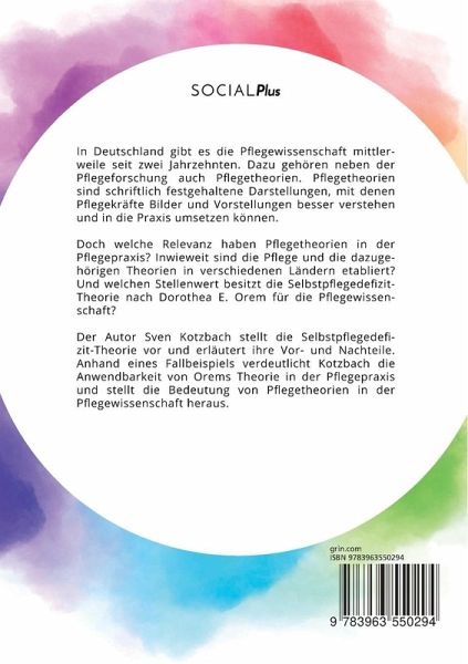 In Deutschland gibt es die Pflegewissenschaft mittlerweile seit zwei Jahrzehnten. Dazu gehören neben der Pflegeforschung auch Pflegetheorien. Pflegetheorien sind schriftlich festgehaltene Darstellungen, mit denen Pflegekräfte Bilder und Vorstellungen besser verstehen und in die Praxis umsetzen können.Doch welche Relevanz haben Pflegetheorien in der Pflegepraxis? Inwieweit sind die Pflege und die dazugehörigen Theorien in verschiedenen Ländern etabliert? Und welchen Stellenwert besitzt die Selbstpflegedefizit-Theorie nach Dorothea E. Orem für die Pflegewissenschaft?Der Autor Sven Kotzbach stellt die Selbstpflegedefizit-Theorie vor und erläutert ihre Vor- und Nachteile. Anhand eines Fallbeispiels verdeutlicht Kotzbach die Anwendbarkeit von Orems Theorie in der Pflegepraxis und stellt die Bedeutung von Pflegetheorien in der Pflegewissenschaft heraus.Aus dem Inhalt:- Pflegemodelle;- Dependenzpflege;- Pflegekräfte;- Interaktionsmodelle;- Pflegeprozess