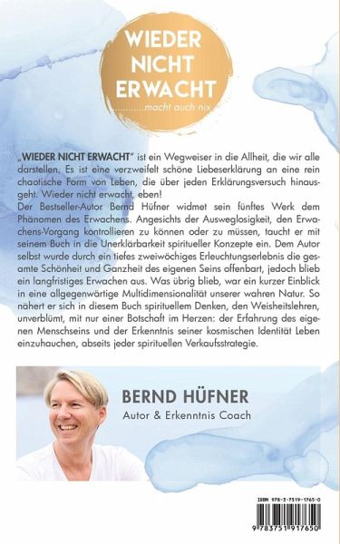"Wieder nicht erwacht" ist ein Wegweiser in die Allheit, die wir alle darstellen. Es ist eine verzweifelt schöne Liebeserklärung an eine rein chaotische Form von Leben, die über jeden Erklärungsversuch hinausgeht.Wieder nicht erwacht, eben!Der Bestseller-Autor Bernd Hüfner widmet sein fünftes Werk dem Phänomen des Erwachens. Angesichts der Ausweglosigkeit, den Erwachens-Vorgang kontrollieren zu können oder zu müssen, taucht er mit seinem Buch in die Unerklärbarkeit spiritueller Konzepte ein. Dem Autor selbst wurde durch ein tiefes zweiwöchiges Erleuchtungserlebnis die gesamte Schönheit und Ganzheit des eigenen Seins offenbart, jedoch blieb ein langfristiges Erwachen aus. Was übrig blieb, war ein kurzer Einblick in eine allgegenwärtige Multidimensionalität unserer wahren Natur. So nähert er sich in diesem Buch spirituellem Denken, den Weisheitslehren, unverblümt, mit nur einer Botschaft im Herzen: der Erfahrung des eigenen Menschseins und der Erkenntnis seiner kosmischen IdentitätLeben einzuhauchen, abseits jeder spirituellen Verkaufsstrategie.