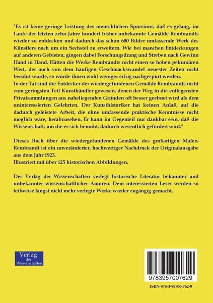 Dieses Buch über die wiedergefundenen Gemälde des großartigen Malers Rembrandt ist ein unveränderter, hochwertiger Nachdruck der Originalausgabe aus dem Jahr 1923.