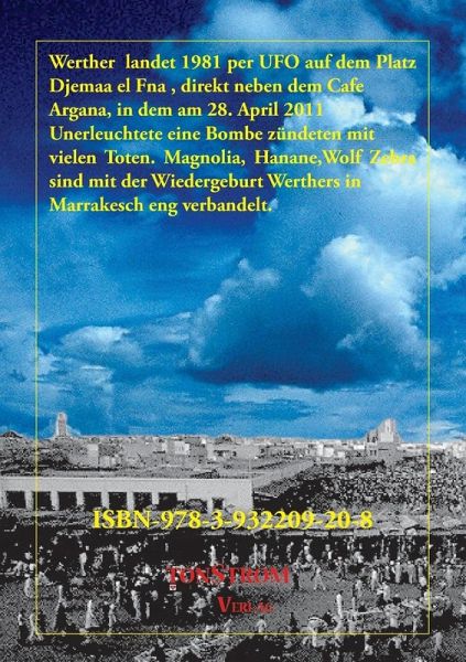 Werther landet 1981 per UFO auf dem Platz Djemaa el Fna , direkt neben dem Cafe Argana, in dem am 28. April 2011 Unerleuchtete eine Bombe zündeten mit vielen Toten. Magnolia, Hanane,Wolf Zebra sind mit der Wiedergeburt Werthers in Marrakesch eng verbandelt.